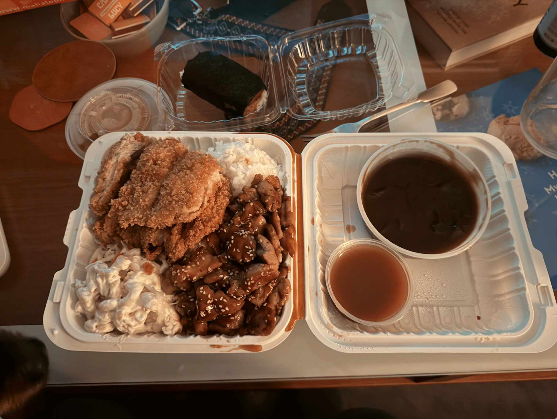 And anyone want to guess what the post-race dinner was? Well of course it was Mahalo Hawaiian barbecue. Still tastes just as good as the first time. And a well-deserved whole plate taken down.