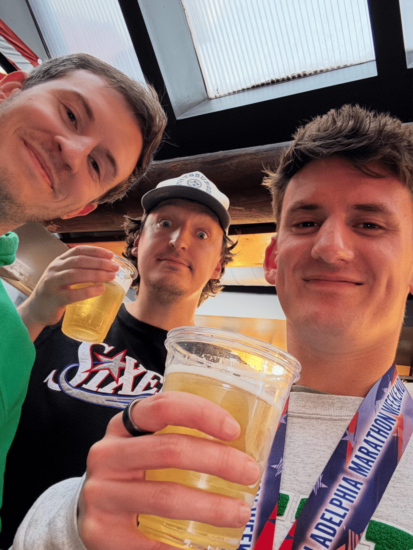 The required post-race beers were had out with friends during what was looking like an easy Eagles win... that didn’t go as planned, but the vibes out with friends were unmatched. What a day.